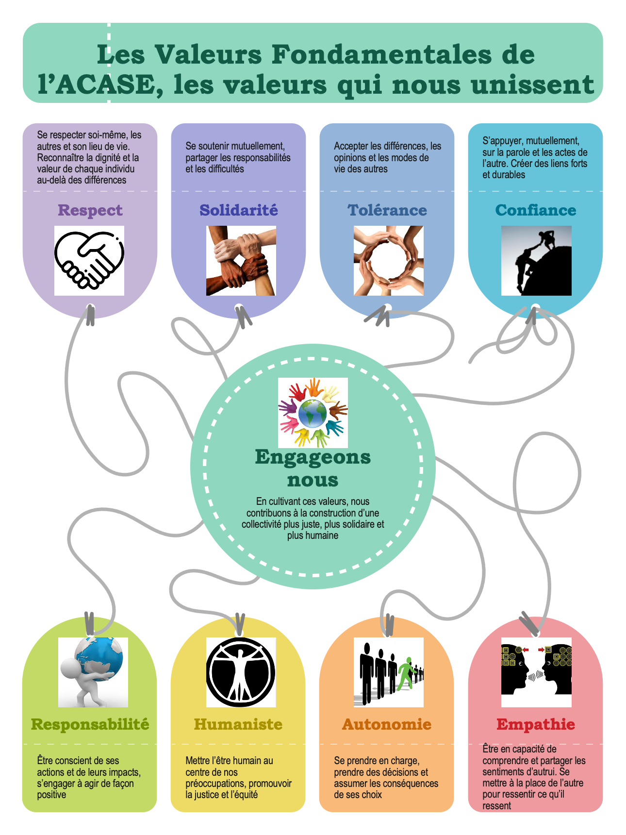 l’Association veille à réaliser son but en s’inspirant de son éthique fondatrice chrétienne et de sa Charte de cohabitation, favorisant notamment le respect d’autrui, la tolérance, la confiance réciproque, la prise d’autonomie, la responsabilité de chacun et la solidarité.